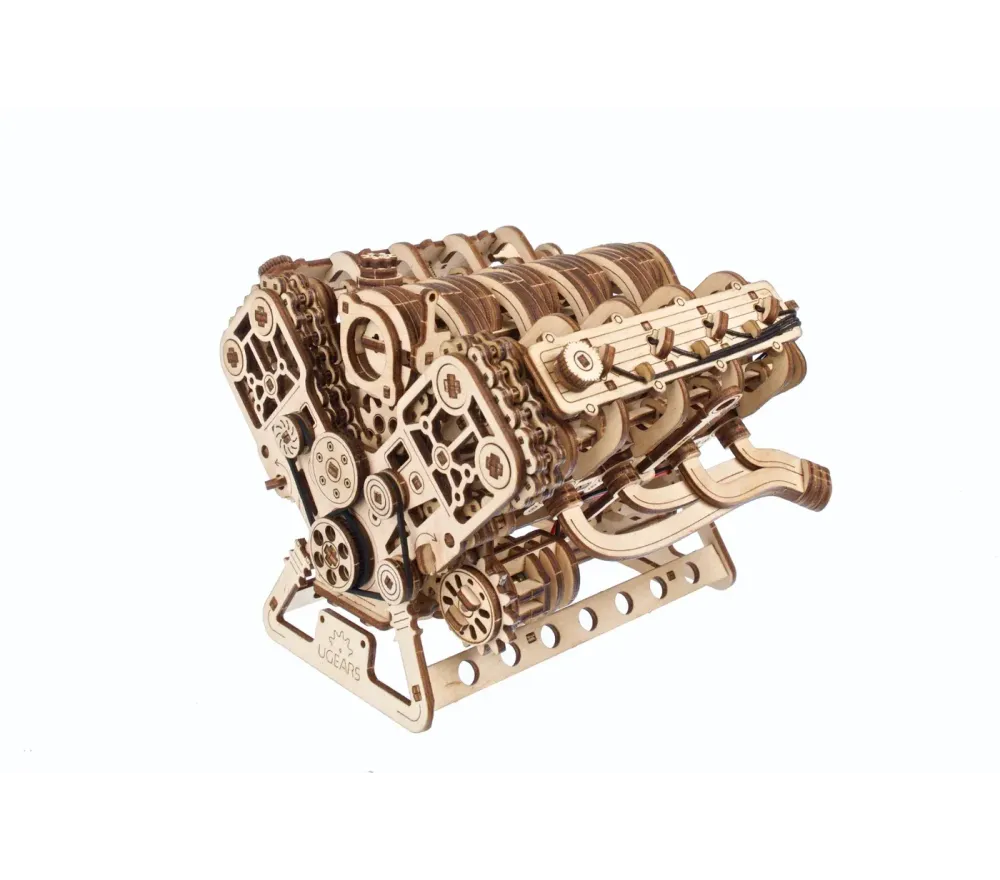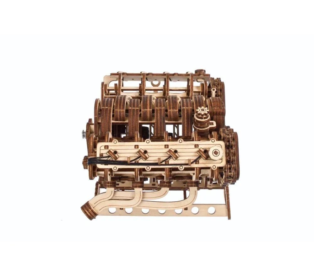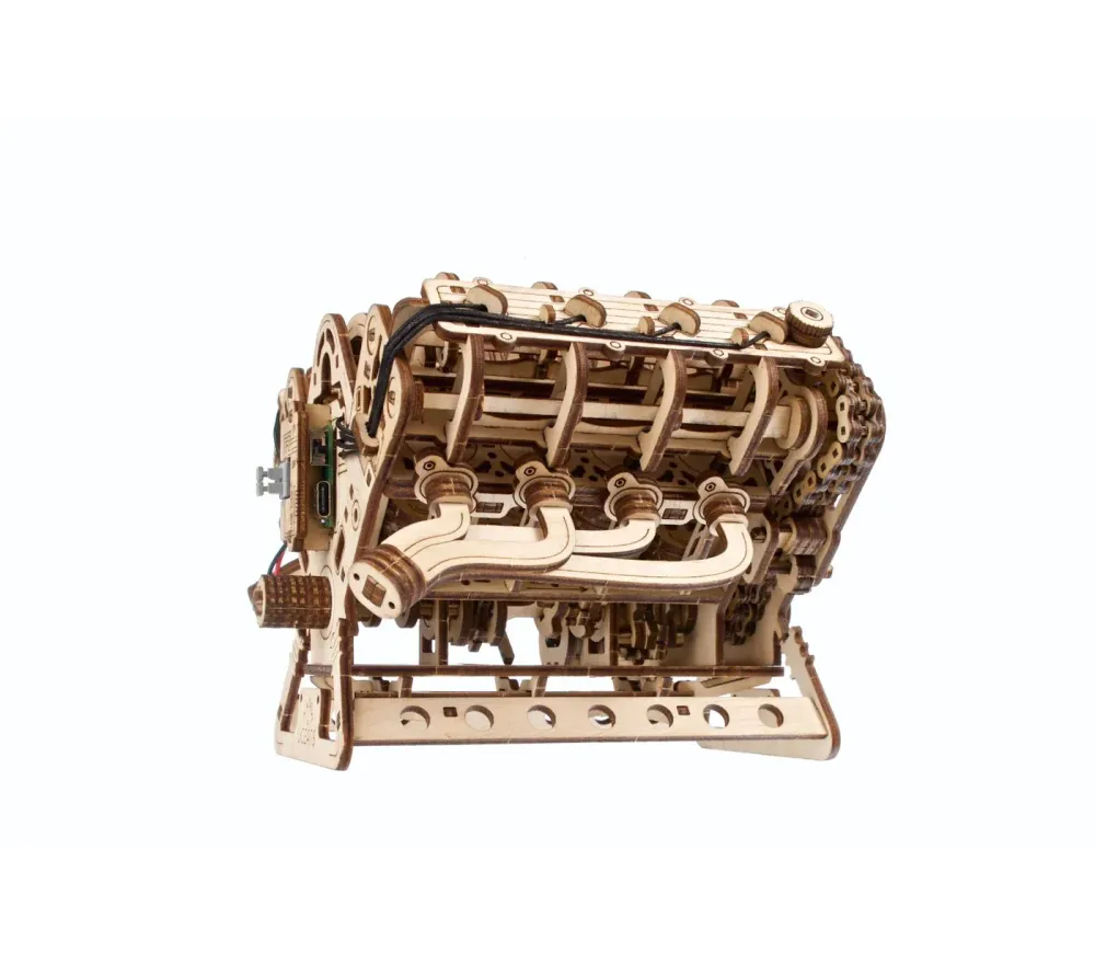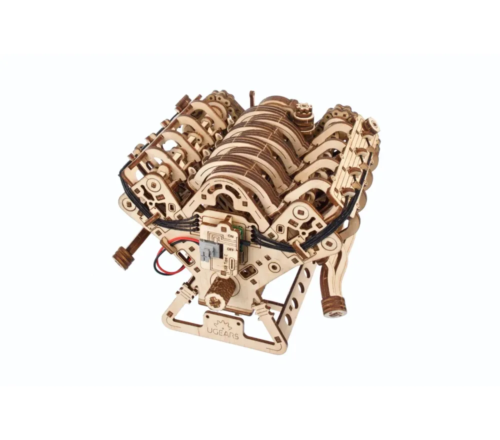 Il V8 Engine di Ugears è un sofisticato modello 3D in legno che riproduce in scala 1:6 il celebre motore V8 a combustione interna, vero simbolo di potenza automobilistica. Questo kit offre una straordinaria esperienza interattiva: puoi azionare il motore sia elettricamente (tramite motore, cavo USB-C e power bank, non inclusi), sia manualmente con una semplice manopola.