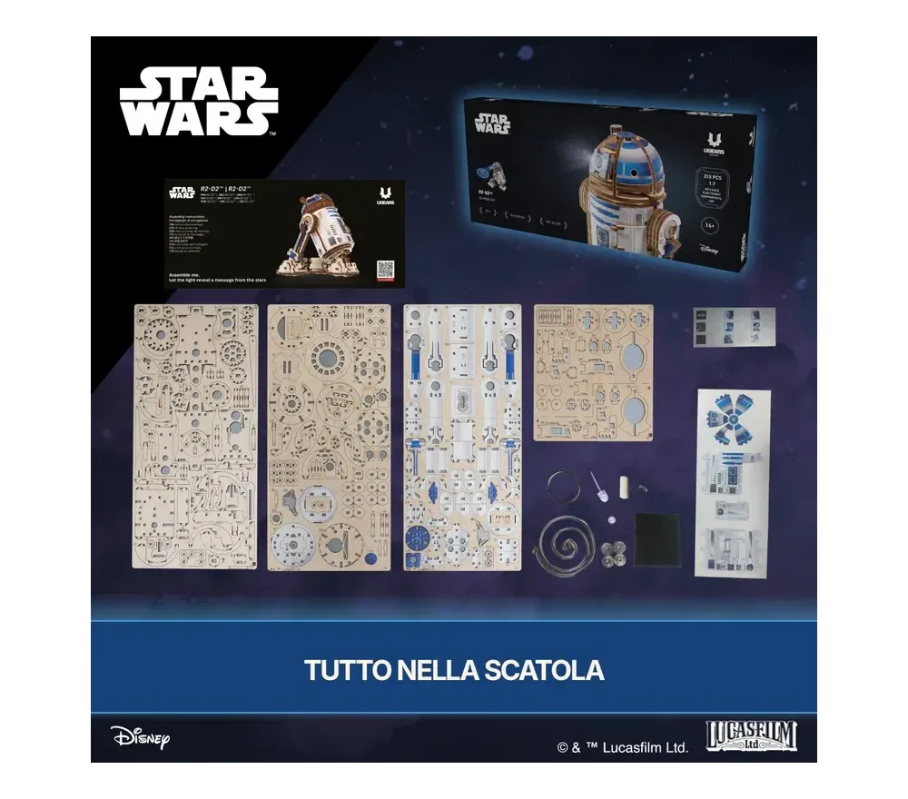 Costruisci il tuo fedele droide astromeccanico con R2-D2™ della collezione Star Wars™ di Ugears. Piccolo nelle dimensioni ma grande nella personalità, questo modello 3D in legno altamente dettagliato e colorato cattura l'inconfondibile design dell'amato droide.