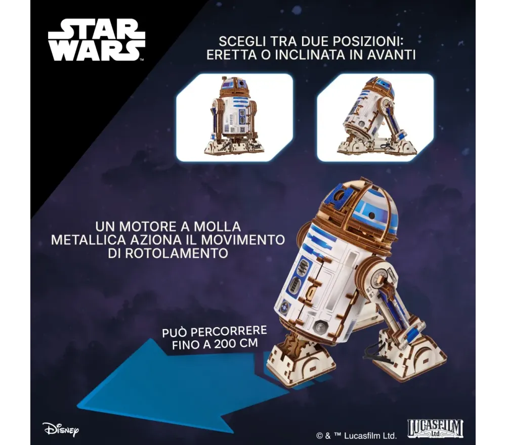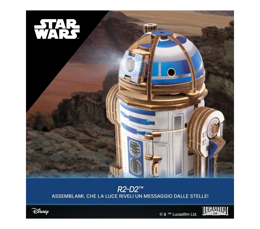 Costruisci il droide più coraggioso della galassia! Puzzle 3D meccanico R2-D2 da 298 pezzi: gira la testa, muove le zampe e si trasforma in modalità corsa. Senza colla, licenza ufficiale.