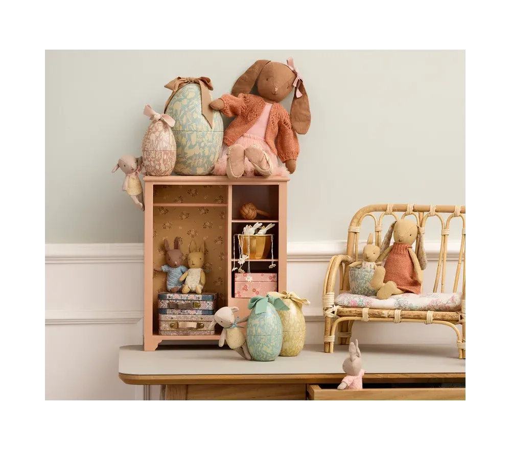 Un elegante uovo di Pasqua in metallo, con bellissime illustrazioni e un fiocco che lo rende ancora più prezioso. Perfetto per contenere un regalo di Pasqua, come ad esempio i coniglietti Maileg (ma anche i topini o degli accessori!).